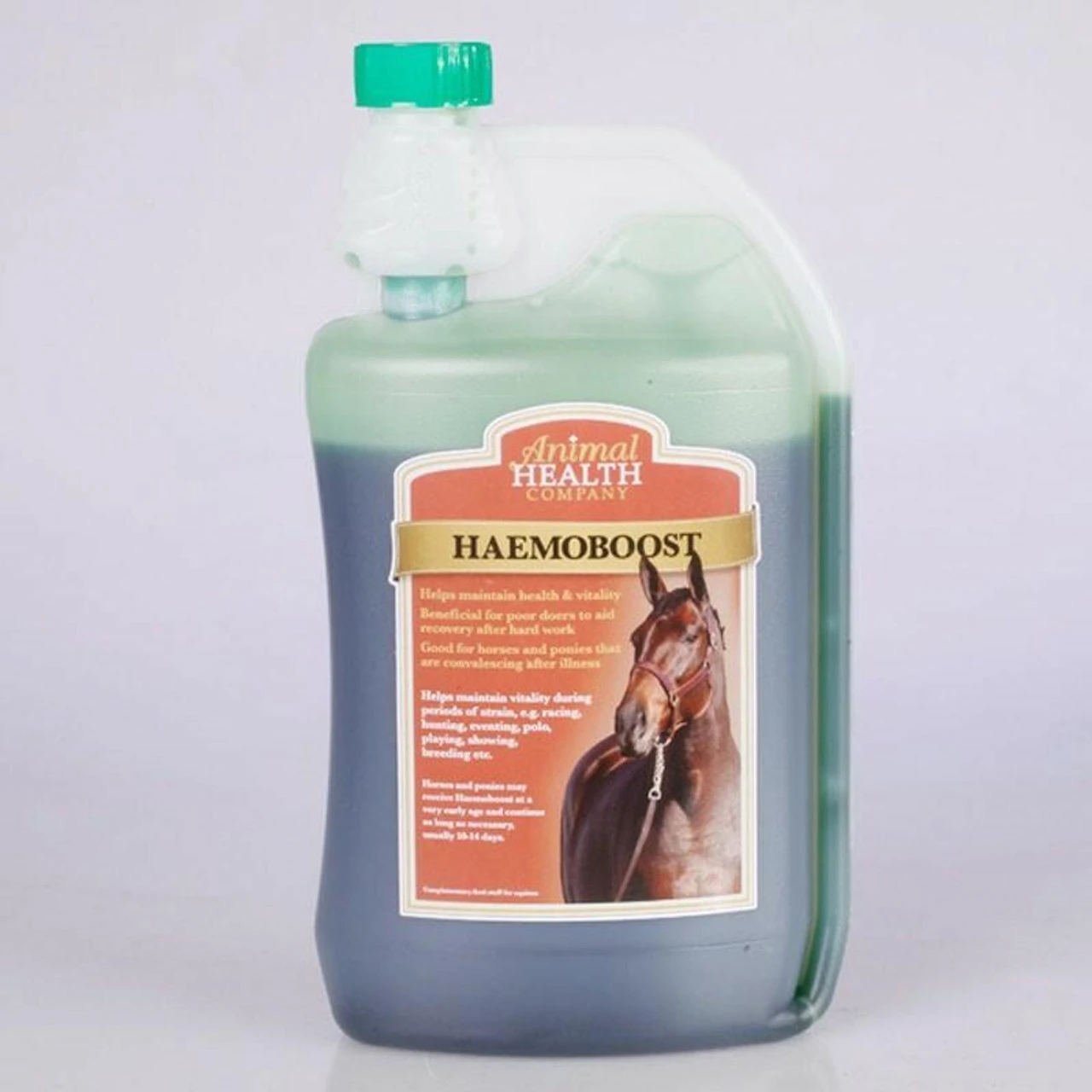 Animal Health Haemoboost is a vitamin B6, B12, folic acid and iron liquid tonic on a sorbitol base, formulated to help maintain healthy blood levels in horses.