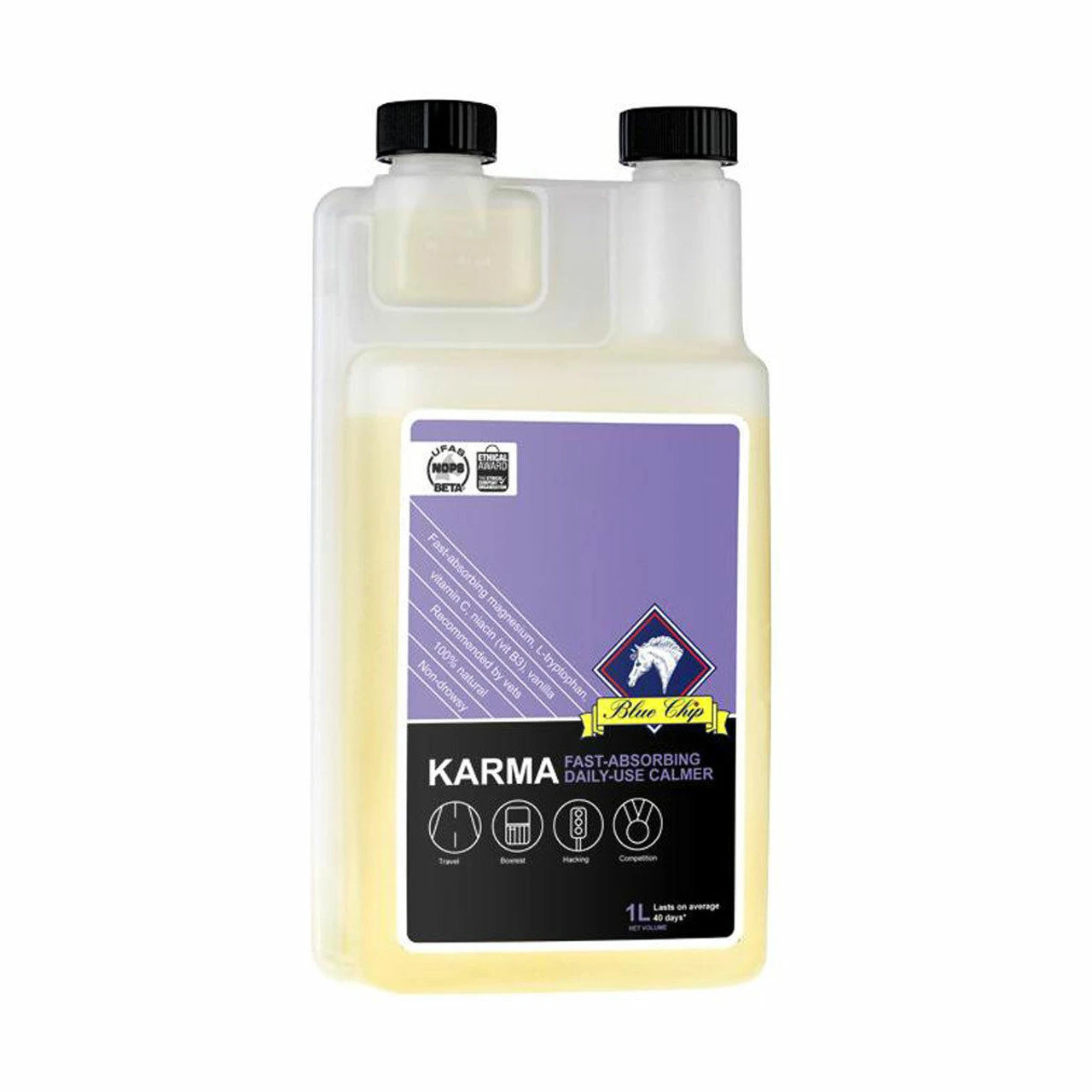 Blue Chip Karma Liquid is a liquid horse calming supplement.