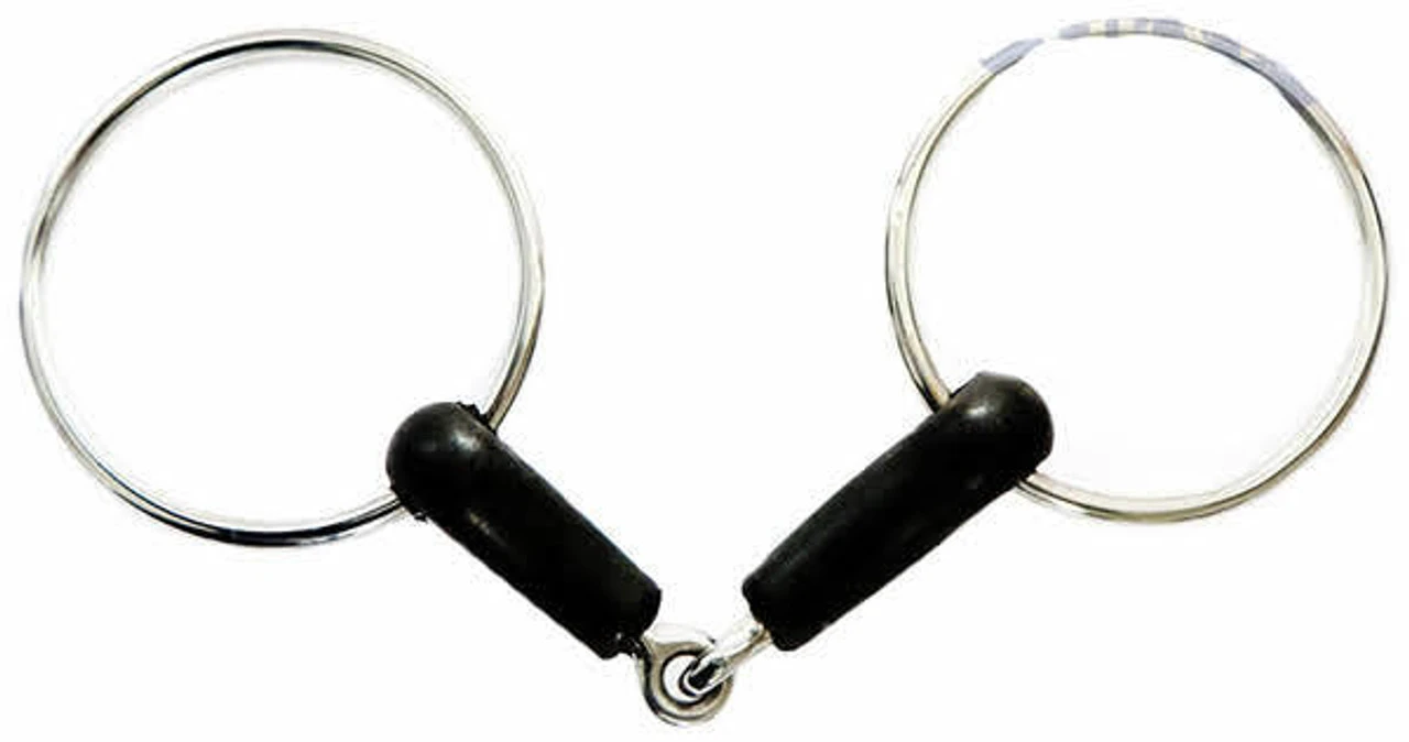 The Dever Rubber Covered Loose Ring Snaffle is a single jointed bit that has a rubber covering for added comfort in the horse’s mouth.
