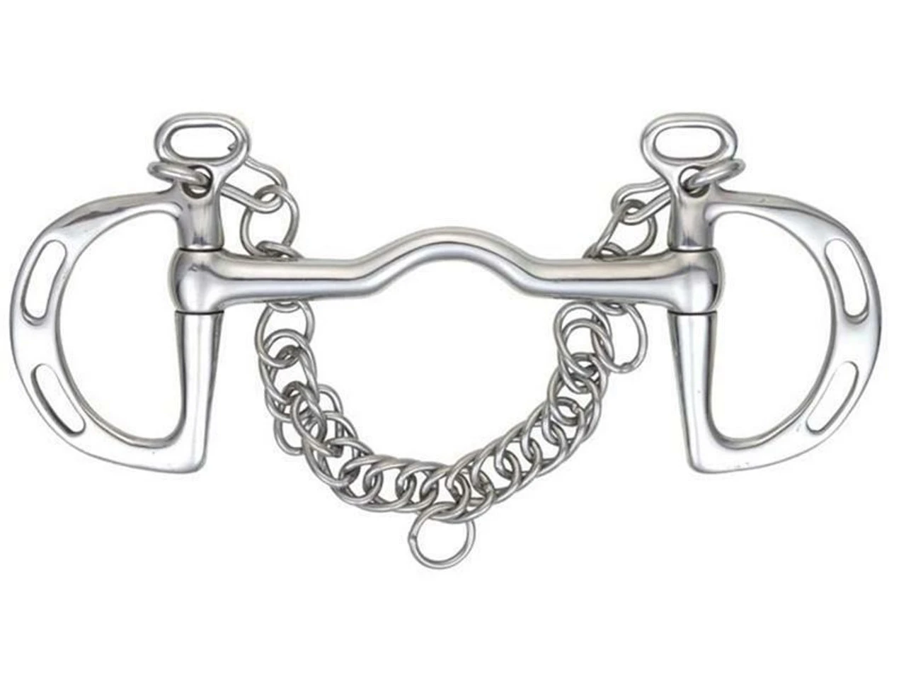 The kimblewick action is similar to that of a hanging cheek with the added advantage of the curb chain. The port mouth mouthpiece of the Kimblewick helps to alleviate tongue pressure, whilst the slotted bit ring can be used to change the action of the curb chain and the amount of poll pressure applied.
