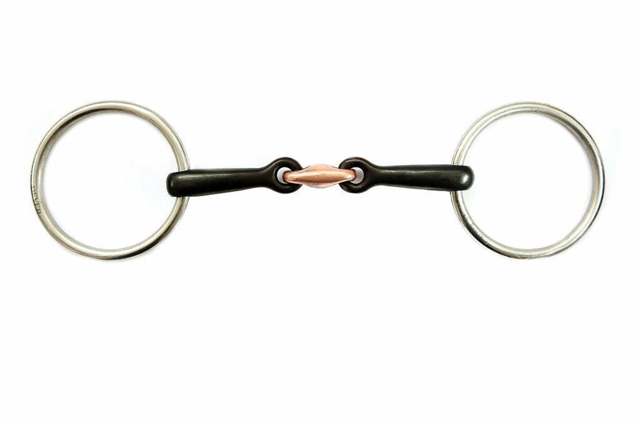 The Dever Sweet Iron Snaffle with Copper Lozenge features stainless steel loose rings.