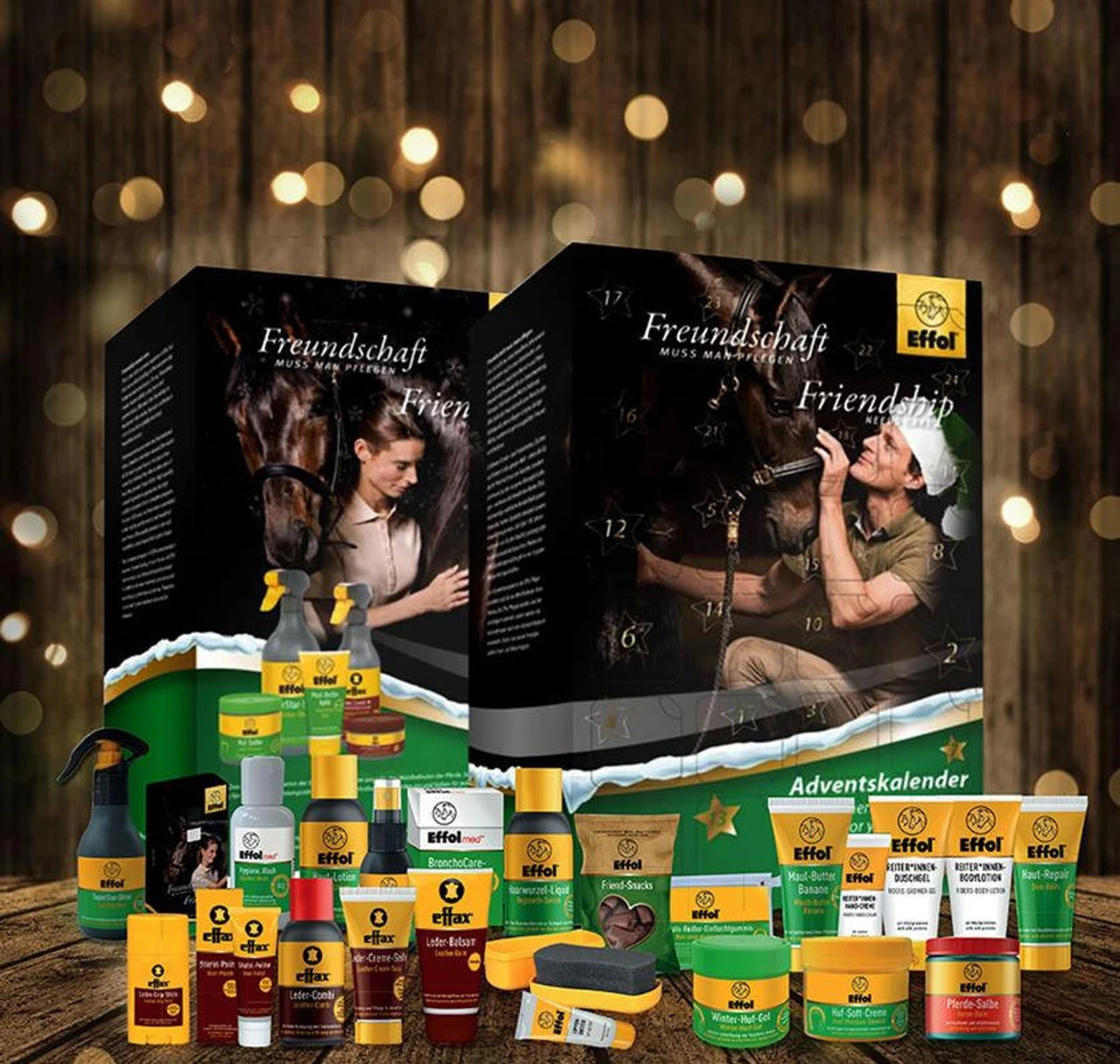 The Effol Advent Calendar for Horse and Rider features 24 doors filled with all your favourite Effol products.