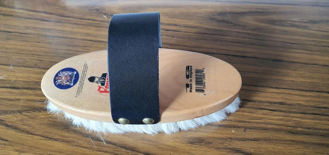The Hills Goat Hair Body Brush is densely filled with white goat hair which is exceptionally soft, hard wearing and resilient.