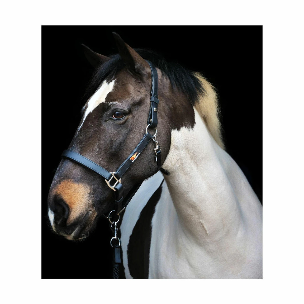The Equilibrium Stellar Safety Headcollar is a stylish, comfortable head collar with a patent pending reusable safety system, which releases when needed to prevent injury to the soft tissue and nerves on the face, poll and neck.