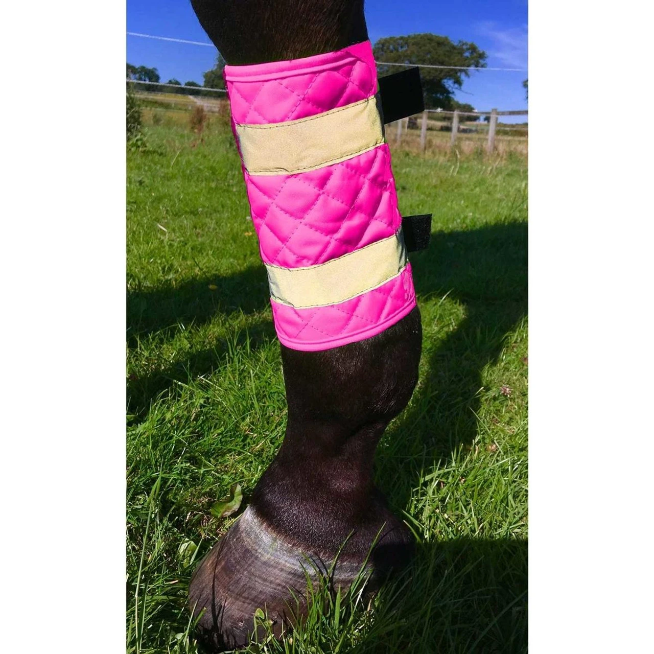 The Equisafety High vis leg Boots are made from a strong and durable yet soft high visibility waterproof fabric with reflective bands stitched on top of each boot.