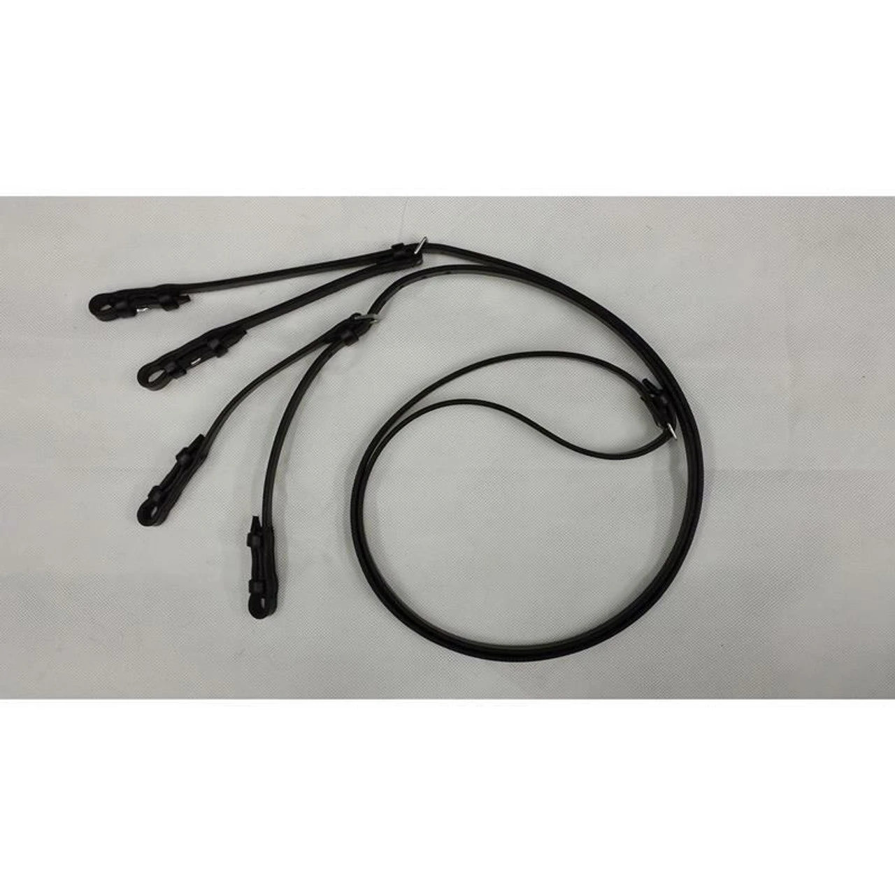 The split reins have a buckle adjustment on the reins and hook stud billets