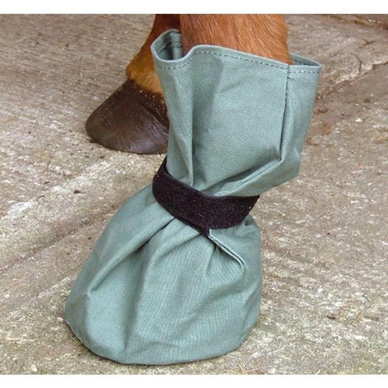 The Hoof It canvas poultice boot has a hook and loop fastening and reinforced sole. Ideal for keeping hoof bandages clean and dry.