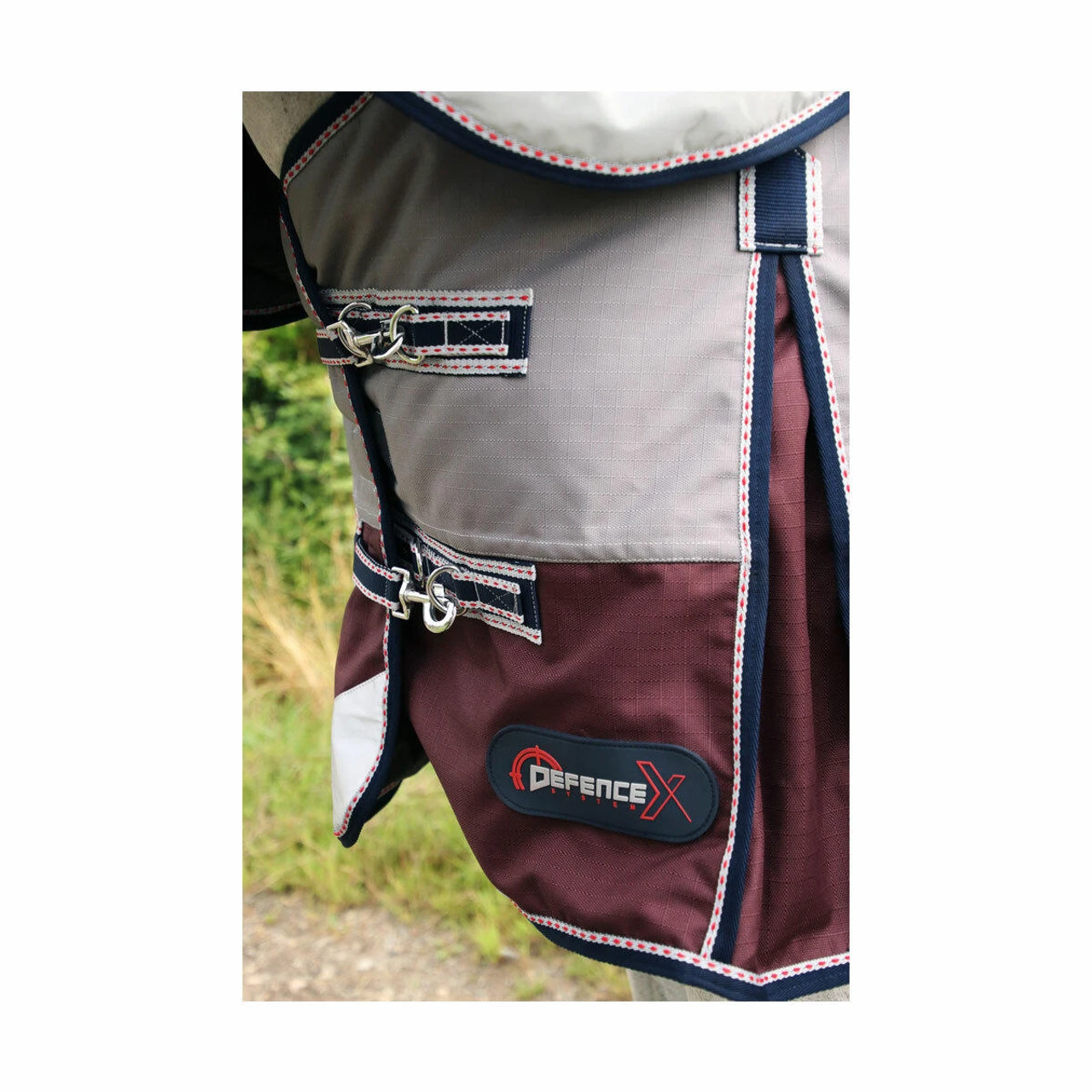 The Hy DefenceX 1200D Mediuweight 300g Turnout Rug and Neck Set is a stunning rug made from a durable and waterproof 1200 denier material, featuring a 300g fill to keep your horse warm on colder days.