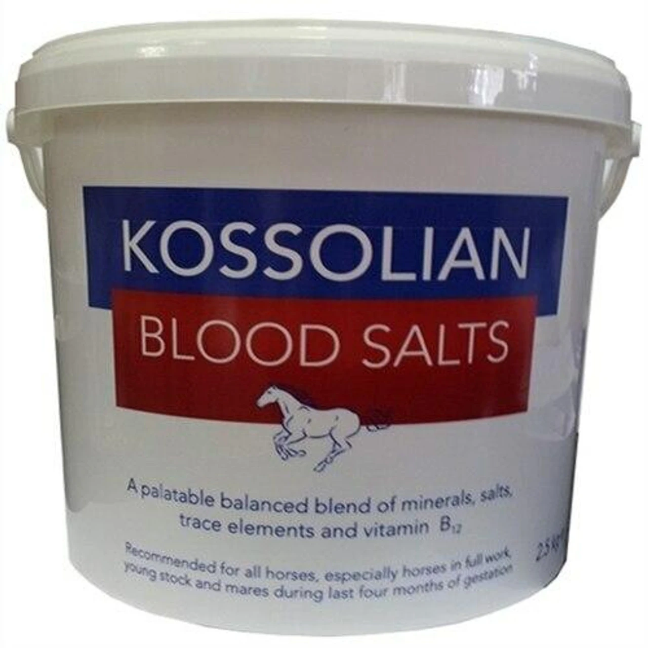 Feed Kossolian Blood Salts regularly to ensure top condition of horses in light and heavy work. The general dose is 40g daily for horses, 3/4 scoop for ponies and half a scoop for foals.