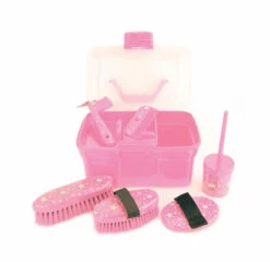 Includes a Small Dandy Brush, Small Body Brush, Hoof Pick with Brush, Plastic Mane Comb, Plastic Comb and Hoof Oil Brush.