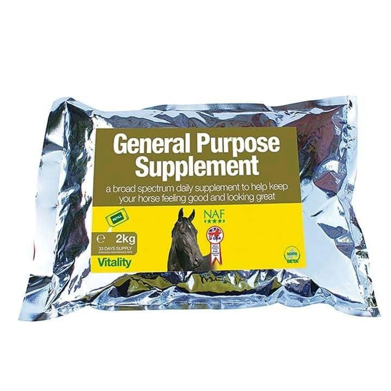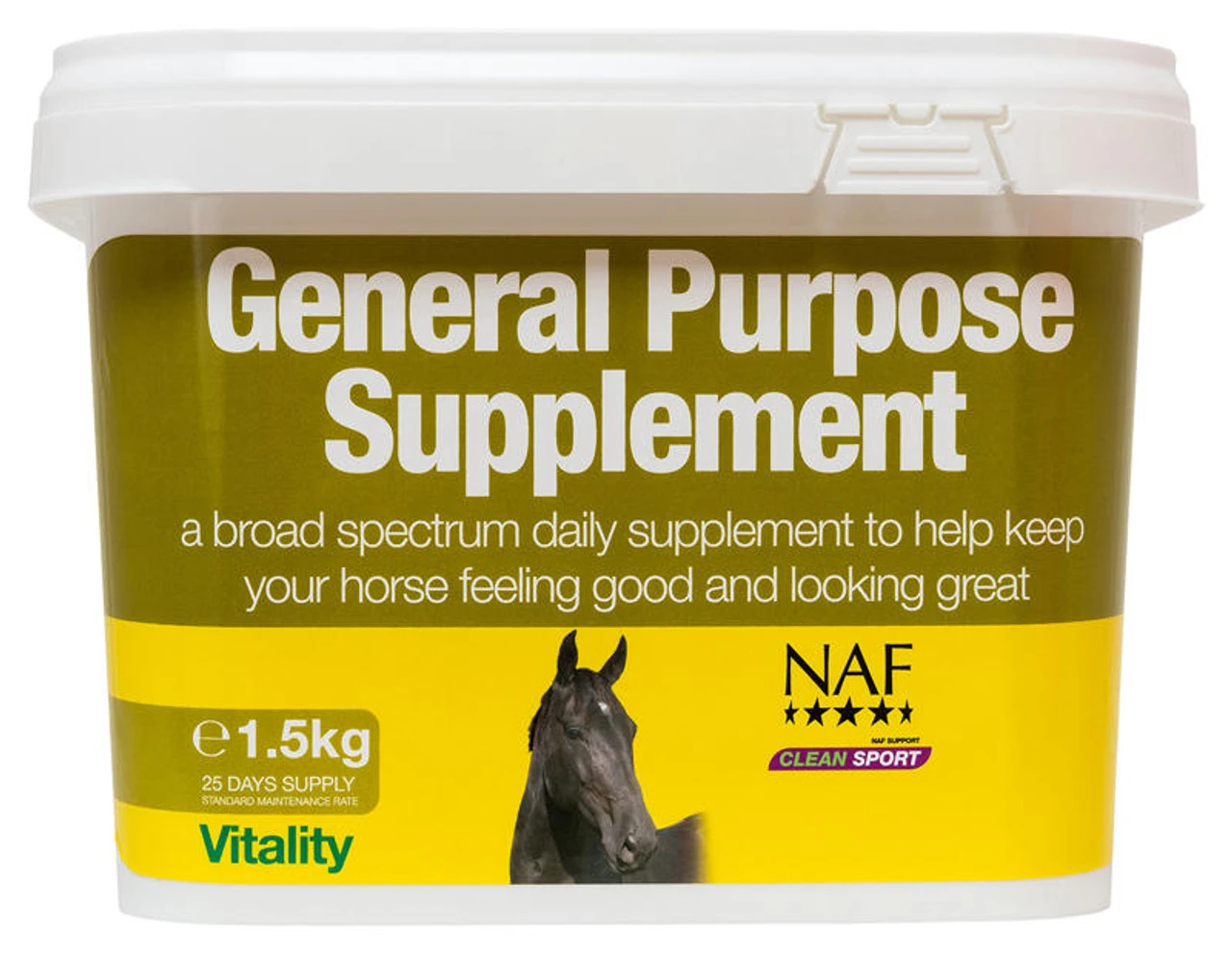 The NAF General Purpose Supplement is a broad based vitamin and mineral supplement for the horse or pony at rest or in light work A fibre diet is natural to the horse, thus many leisure horses will receive all the energy they need from forage alone. However, fibre alone is unlikely to provide all the vitamins, minerals and trace elements required for health and vitality, especially when the forage has been dried.