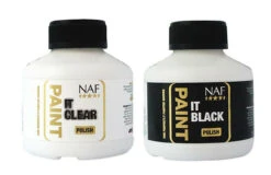 Put your best hoof forward with NAF Paint it Hoof Polish. This quick drying paint-on hoof polish – which comes in clear or black – gives a super shiny finish.