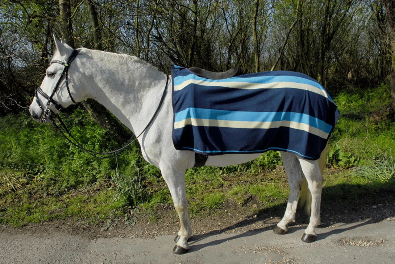 The Rhinegold Polar Fleece Continental Exercise Sheets have a velcro closure at the front and a fillet string.