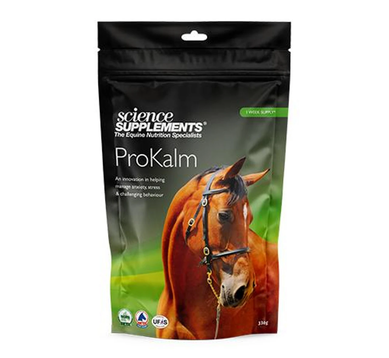 Science Supplements ProKalm is an innovation in managing anxiety and stress in horses and ponies allowing them to perform to their potential. Once horses become anxious they may develop behaviours that make managing them difficult such as poor concentration, spooking, bolting, pulling, wind-sucking, crib biting, pawing, stamping and box walking.