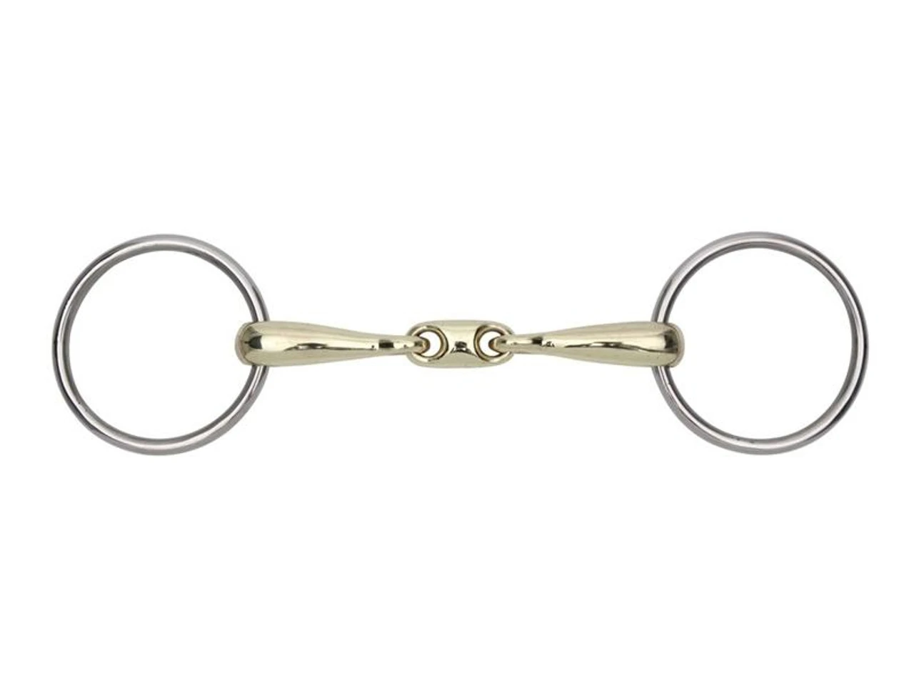 The Shires Loose Ring Brass Alloy Training Bits have a lozenge link, stainless steel rings and a brass alloy mouthpiece.