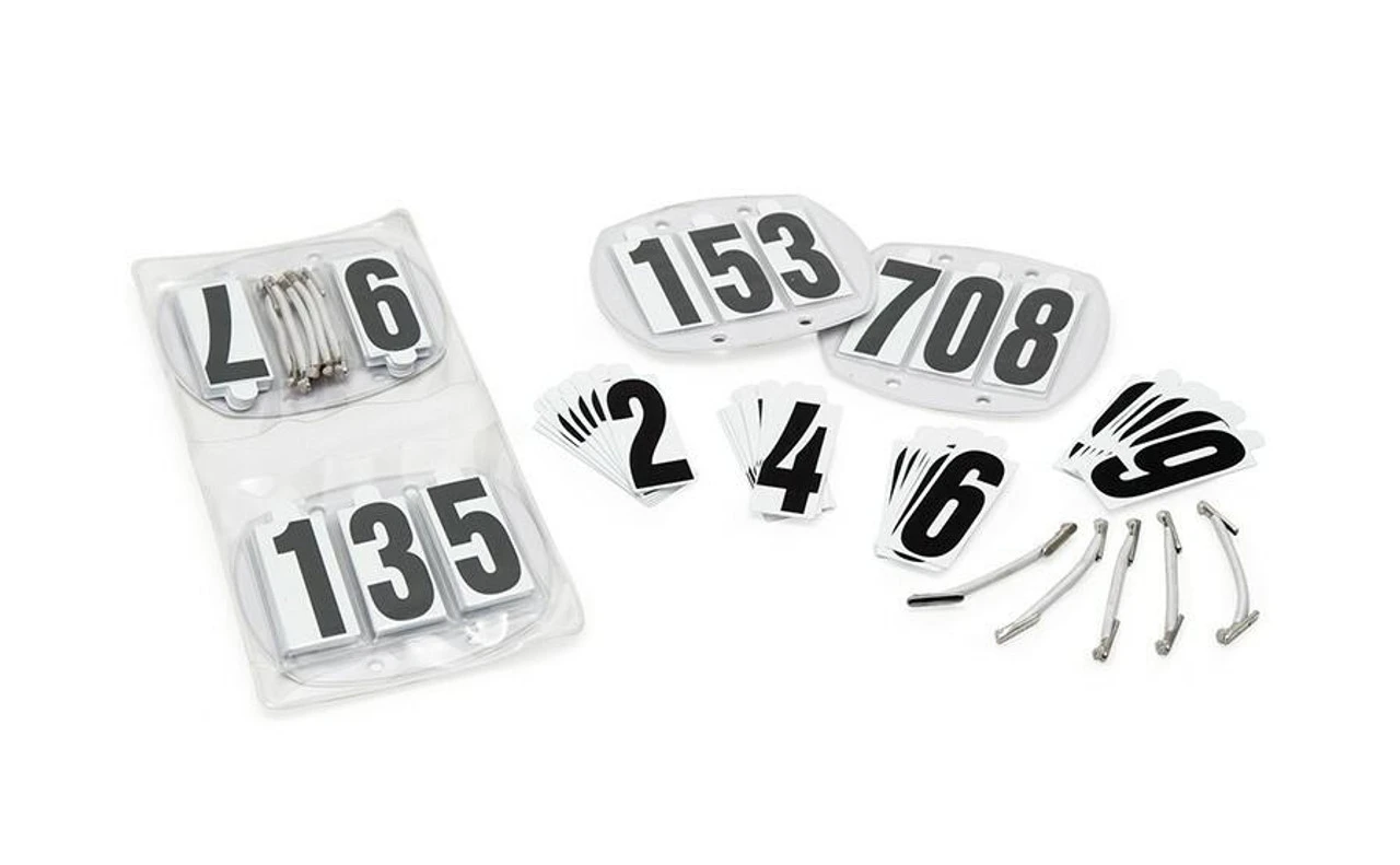 The Shires Bridle Number Kit (8082N) is a smart wipe clean number holder set that includes two holders with elastic fixings, 4 sets of numbers and a compact storage wallet.