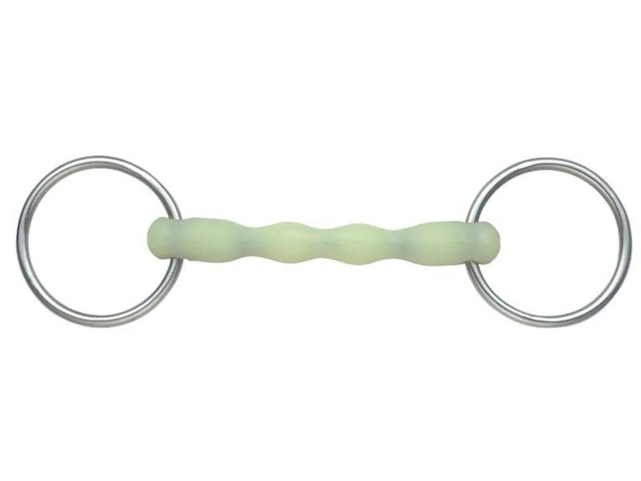 Am apple flavoured, Shires Equikind, flexible nylon loose ring snaffle with a straight bar, mullen mouth. The mullen mouth straight bar is rippled and the loose ring allows movement within the mouth.