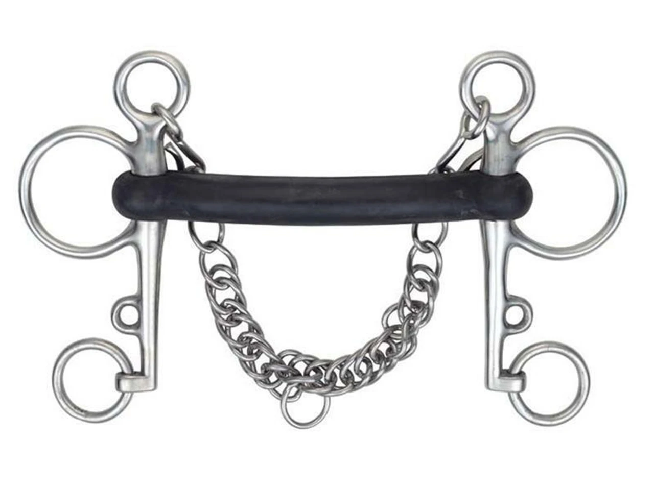The rubber mouthpiece is very gentle on the horses mouth. Pelham bits attempt the same results as a double bridle, but using only one bit. They work on the points of control in the mouth, plus the poll and curb groove.