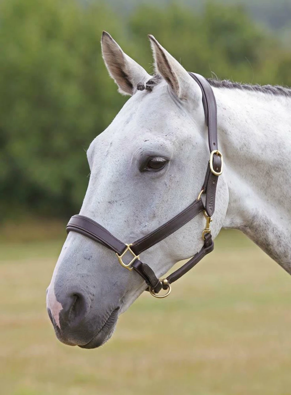 The Shires Blenheim Leather Travel Headcollar, hand-crafted in premium leather, features generous padding on the headpiece and noseband, making it particularly suitable for travelling.