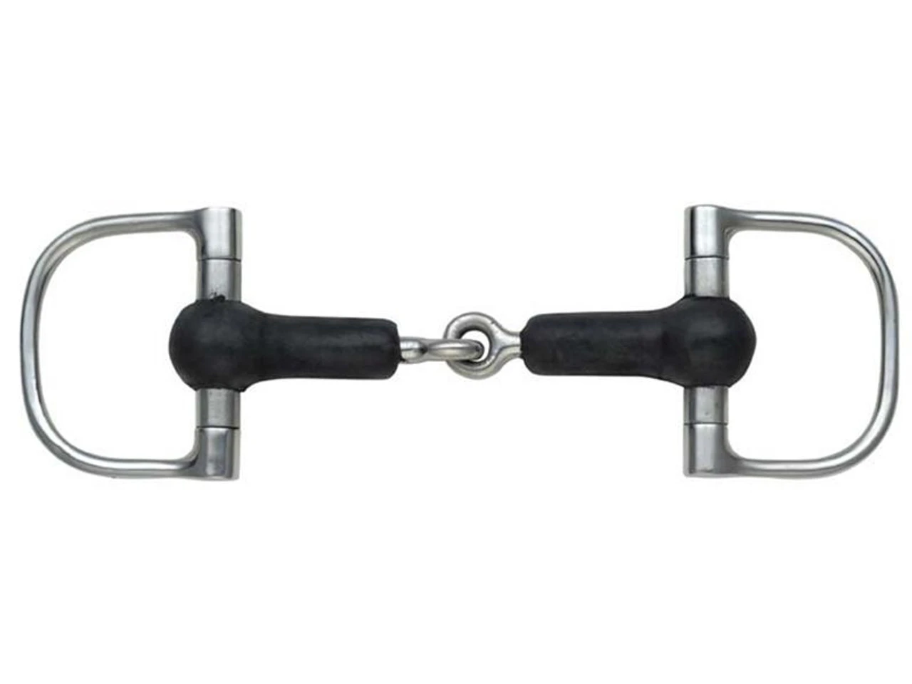 The Rubber covered Dee Bit has a single joint. The single joint creates a nutcracker action within the mouth, so is considered to be more severe than the french link or lozenge.