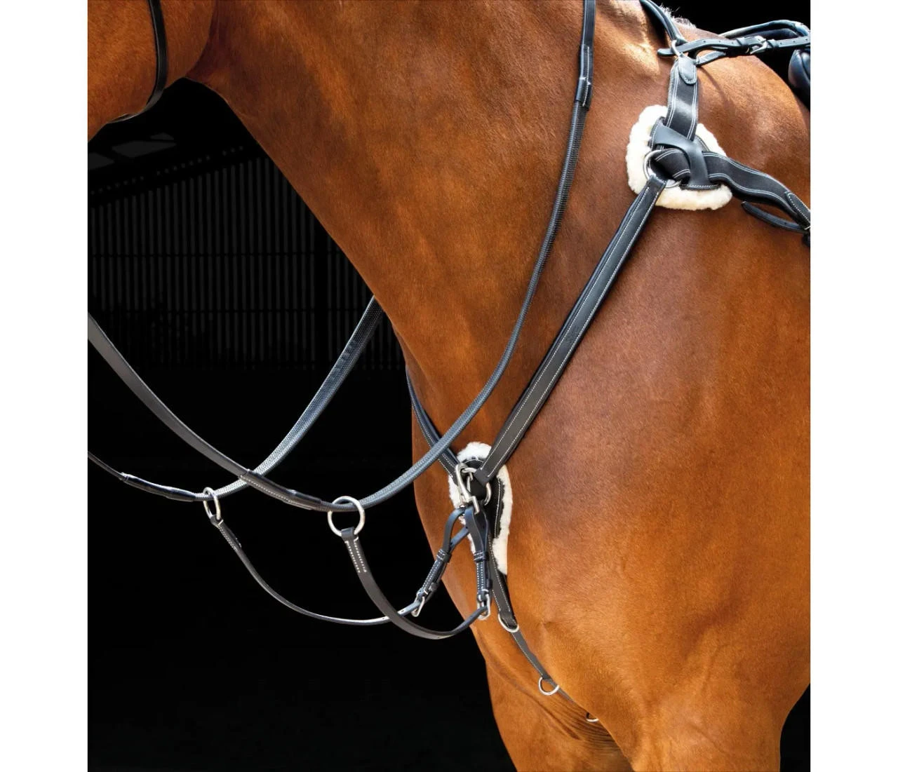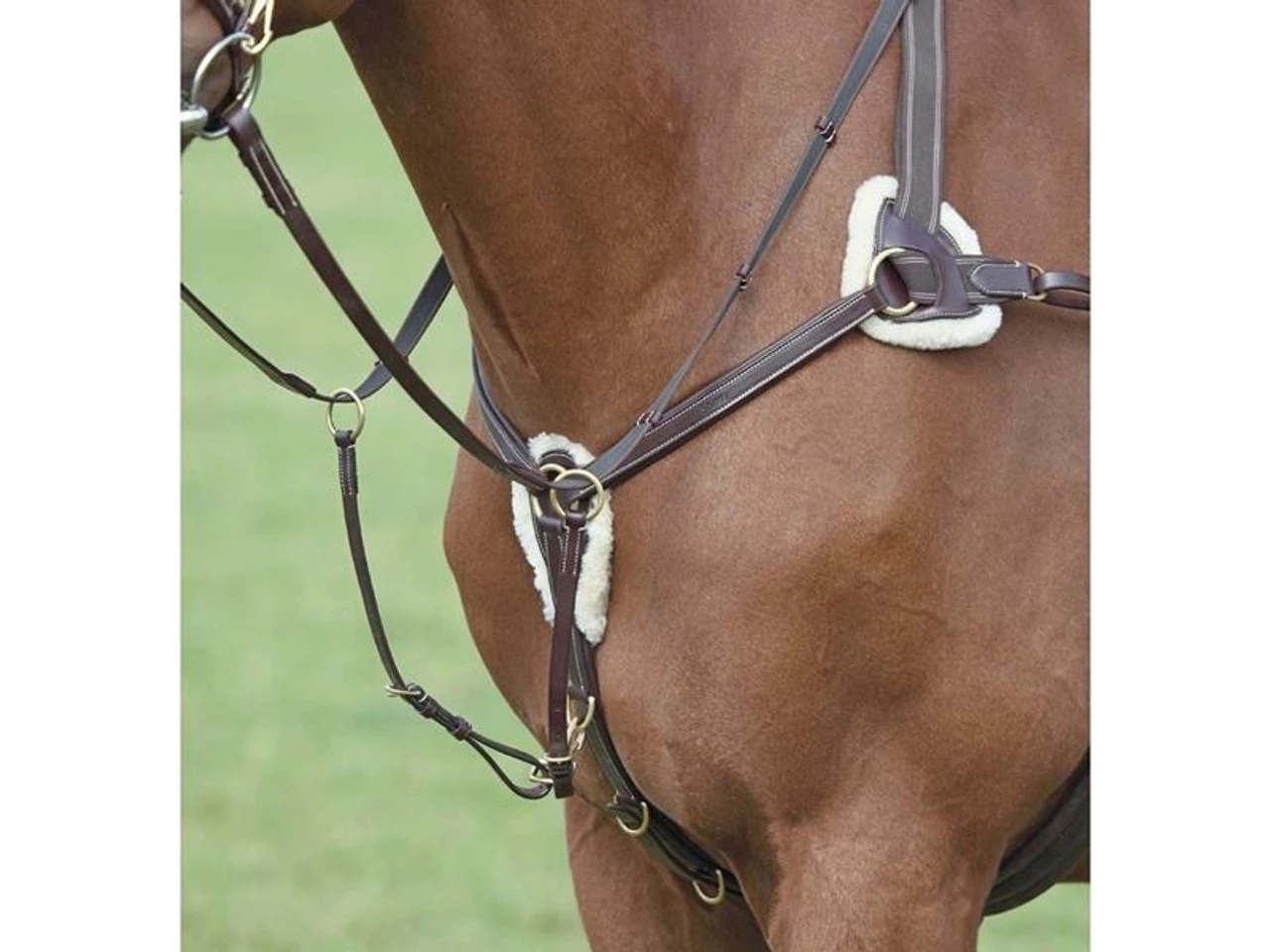 The 5 point breastplates feature contrast stitching, padded leatherwork and removable sheepskin pressure pads.