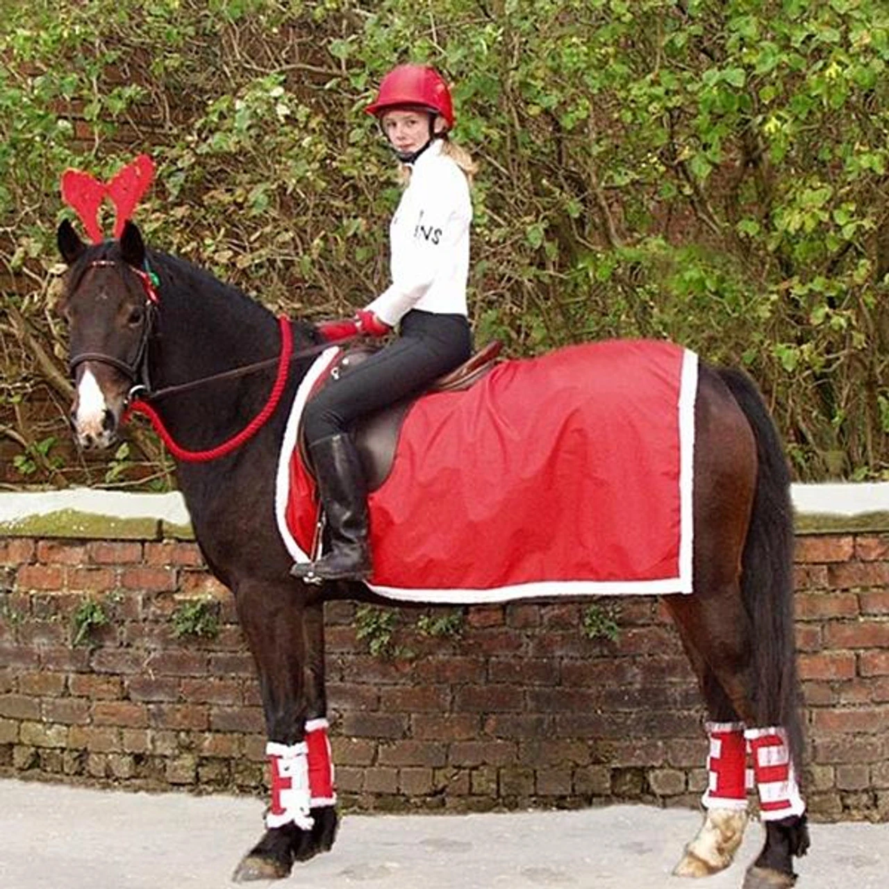 The Showquest Christmas Exercise Sheetis perfect ponies that are not clipped. Made from a lightweight acrylic red material with a white faux fur edging.