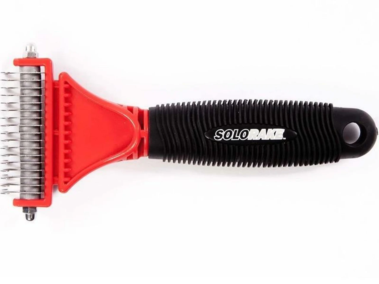 The SoloRake is a unique double headed grooming rake – a coarse blade and a medium blade in one place.