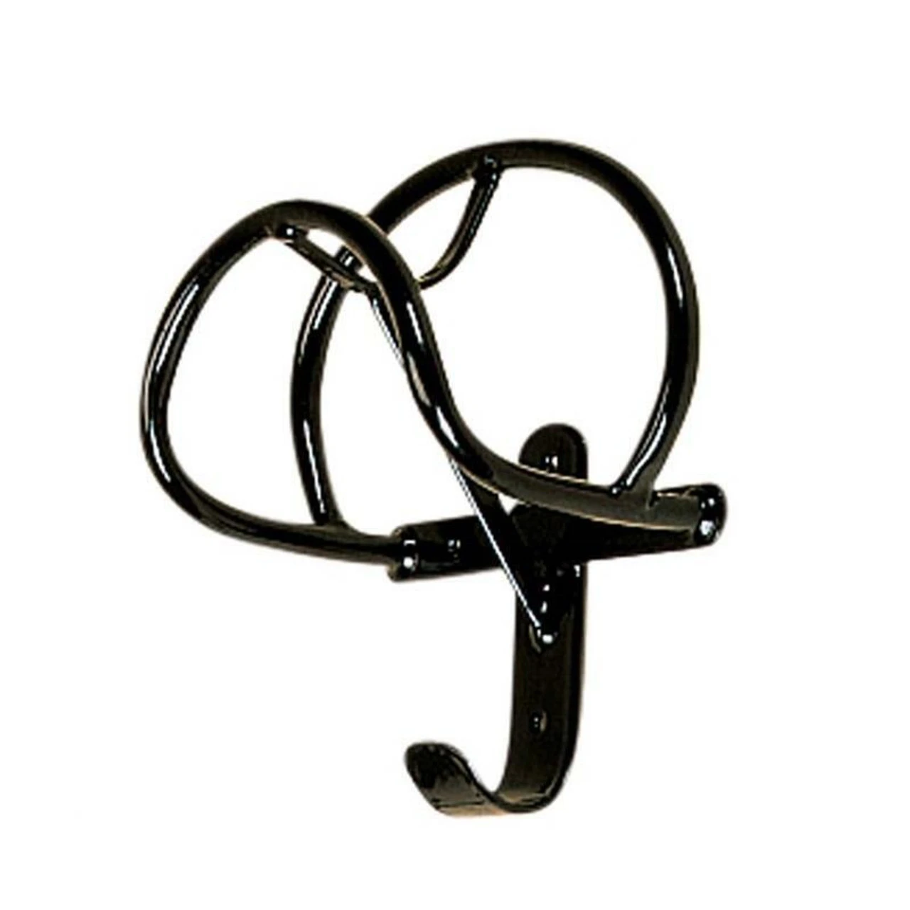 A harness collar rack made from black plastic coated steel that is designed to hold the collar from a set of horse driving harness. Height 26 cm Width 24 cm Projection 15cm