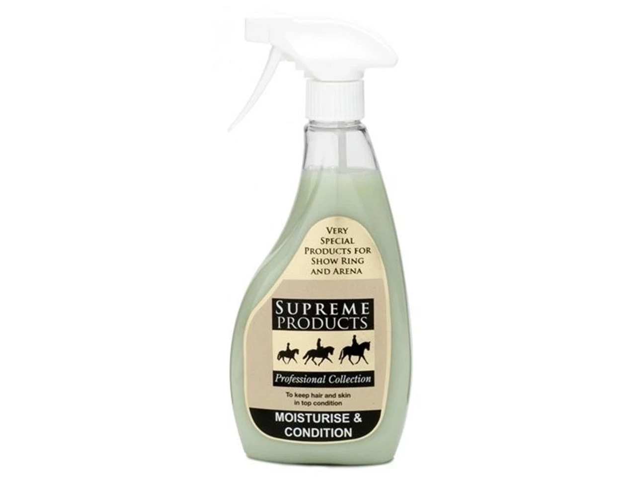 Use Supreme Products Moisturise and Condition spray on manes and tails that are regularly plaited, hooded, dry or liable to get damaged. When Supreme Products Moisturise and Condition is sprayed on manes and tails regularly, it will moisturise to keep skin supple and condition to protect and preserve valuable mane and tail hairs.