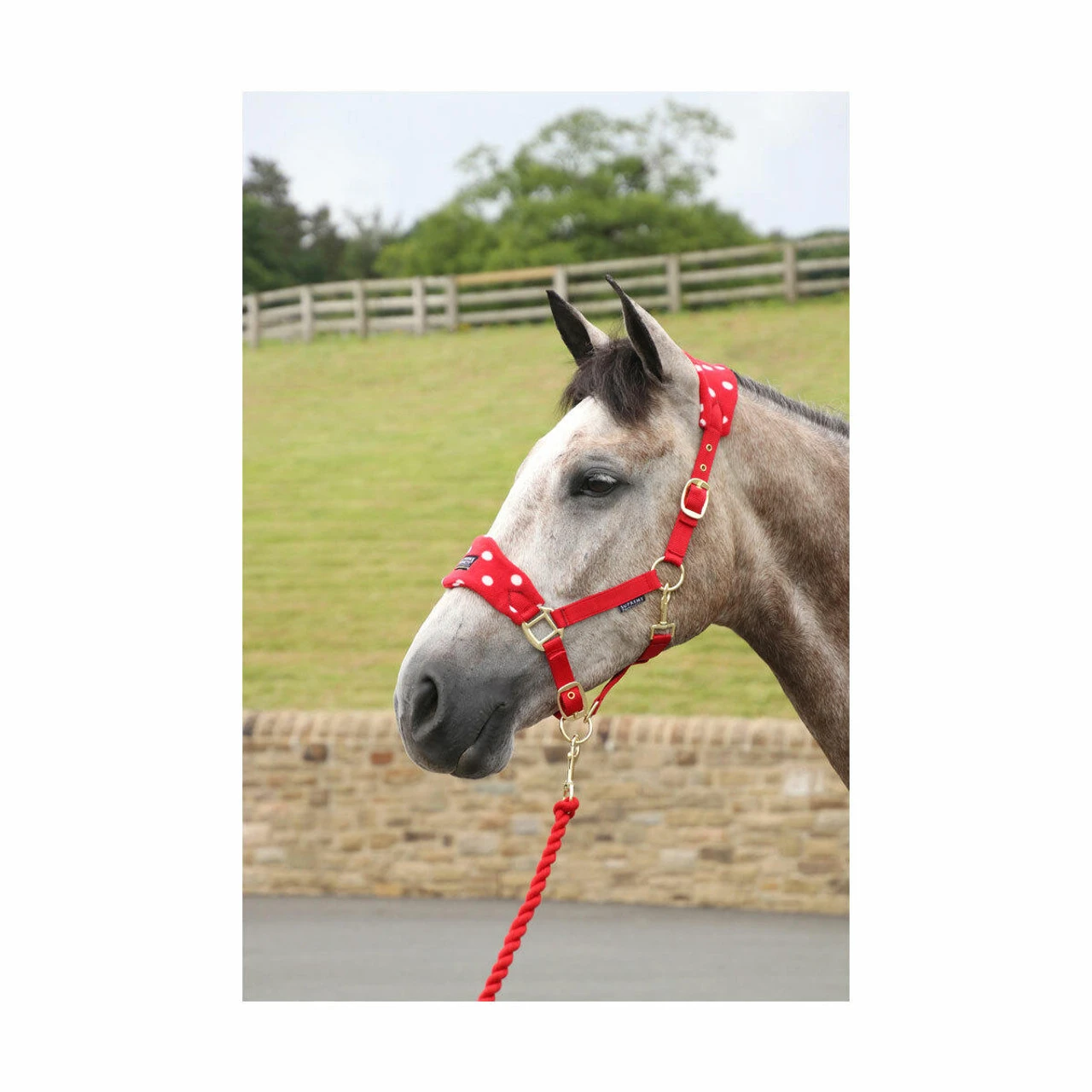The Supreme Products Dotty Fleece Head Collar & Lead Rope Set is a super smart head collar and lead rope set with luxurious fleece over the poll and nose making it ideal for sensitive horses susceptible to rubbing.