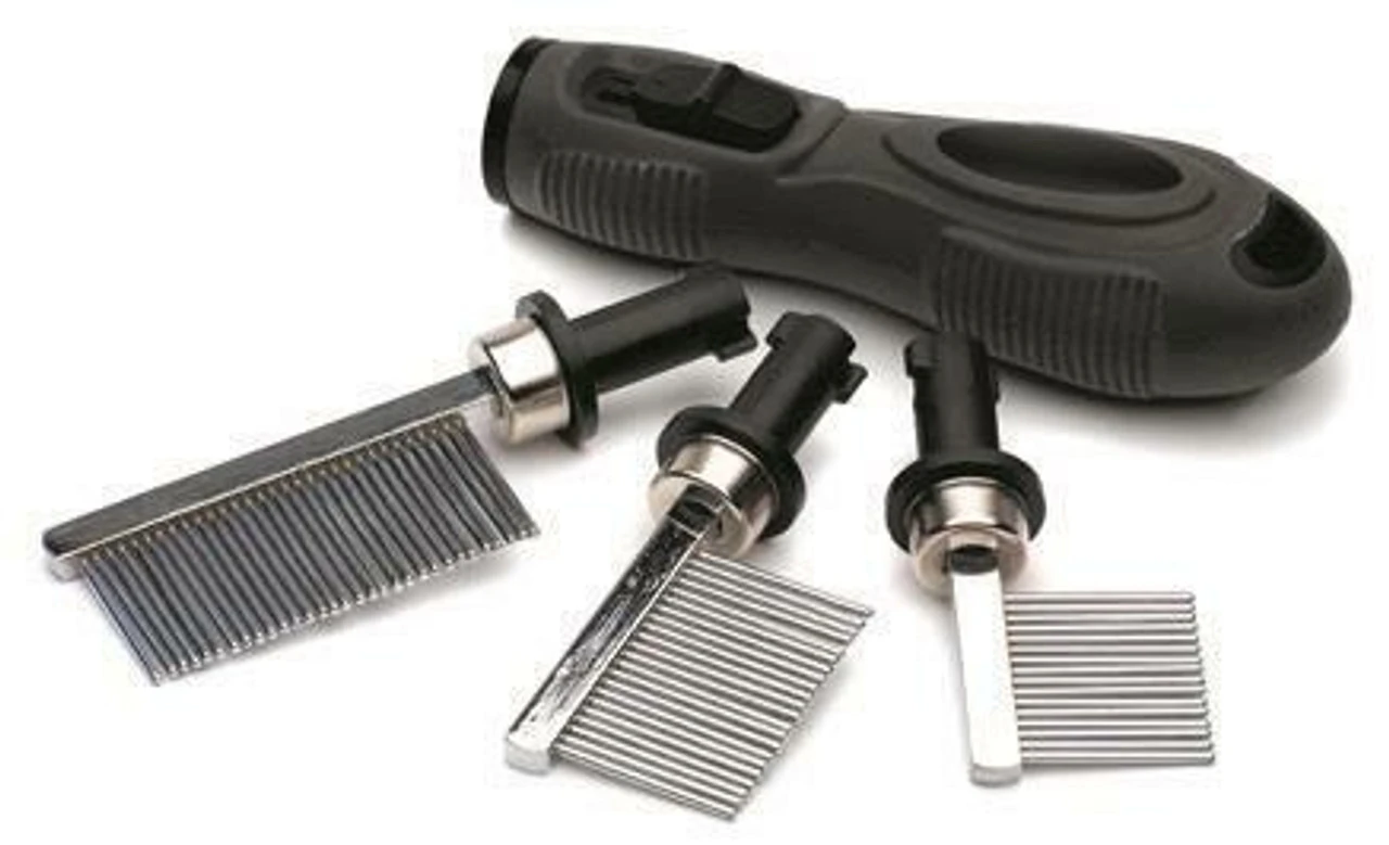 The Supreme Products Quarter Marking Comb has been designed with inter-changeable comb heads to cover most eventualities and sizing requirements for quarter marks. The Supreme Products Quarter Marking Comb Set includes comb heads of 25mm, 35mm and 50mm dimensions. The Quarter Marking Combs enable the user to produce clean and tidy marks across a range of horse and pony sizes from lead rein to hunter, hack and cob.