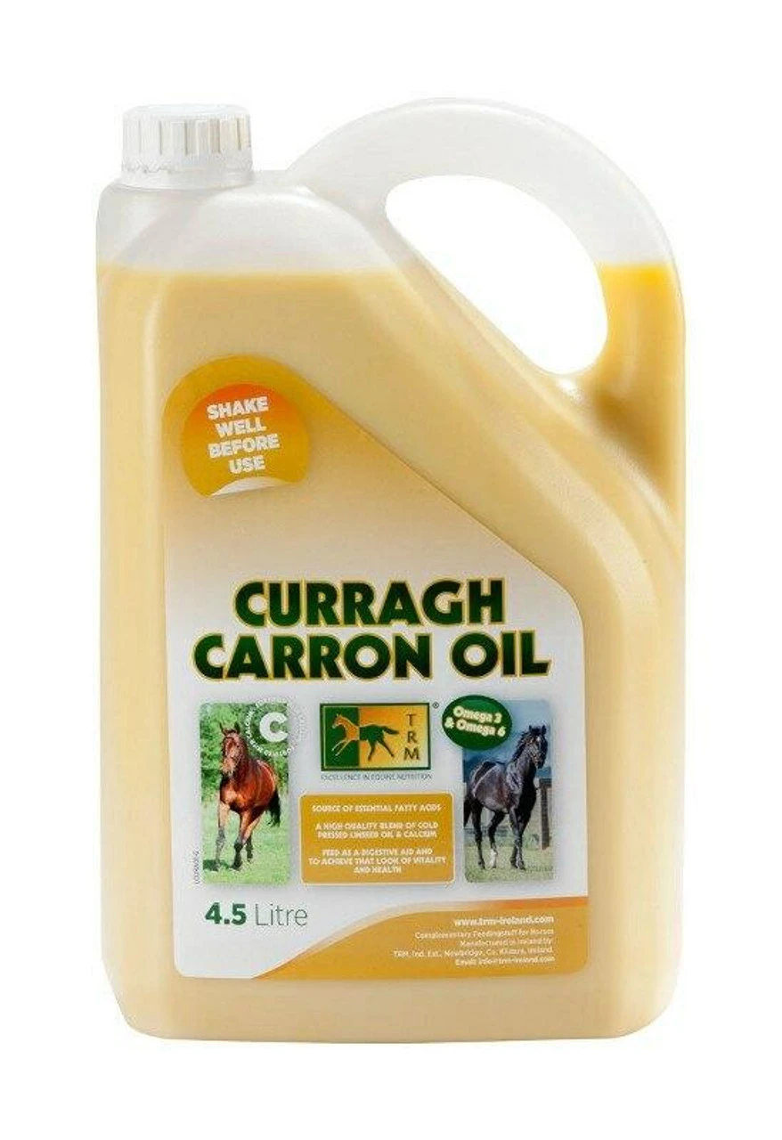 TRM Curragh Carron Oil is a balanced bland of essential fatty acids (omega 3 and 6) derived from high quality, cold pressed linseed oil fortified with calcium hydroxide. Curragh Carron Oil helps to reduce the inflammatory response to wear and tear, whilst also maintaining the health of the circulatory system Feed 60ml/day (horses), or 30ml to ponies or foals Available as 4.5 litre or 20 litre bottle