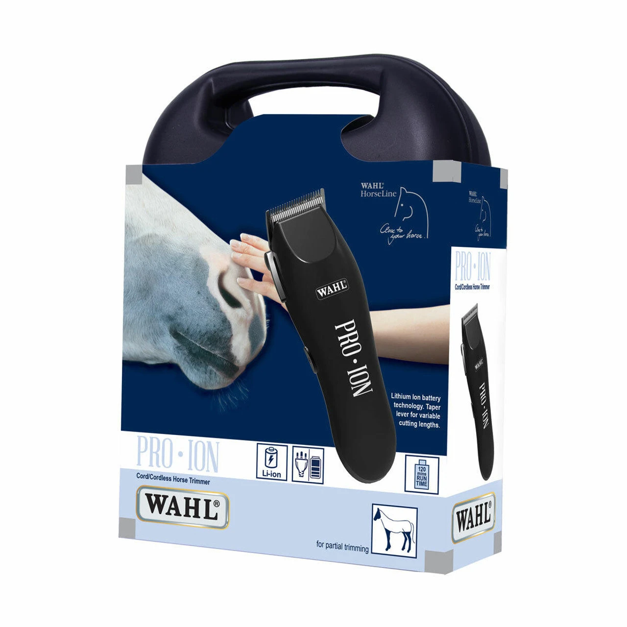 The Wahl Pro Ion horse trimmer is a mains rechargable clipper which works on and off the cord.