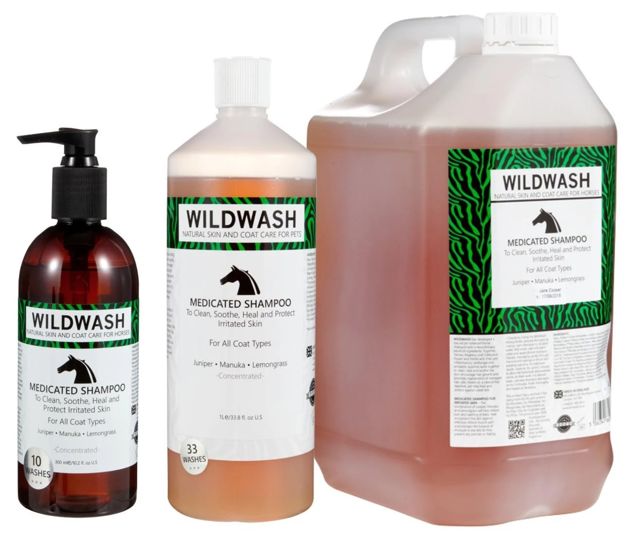 The WildWash Medicated Shampoo contains a combination of Juniper, Manuka and Lemongrass to help reduce pain and swelling of bites, heal and protect the skin against infection, relieve muscle pain and maintain the balance of moisture to the skin to help prevent dry patches or flaking.